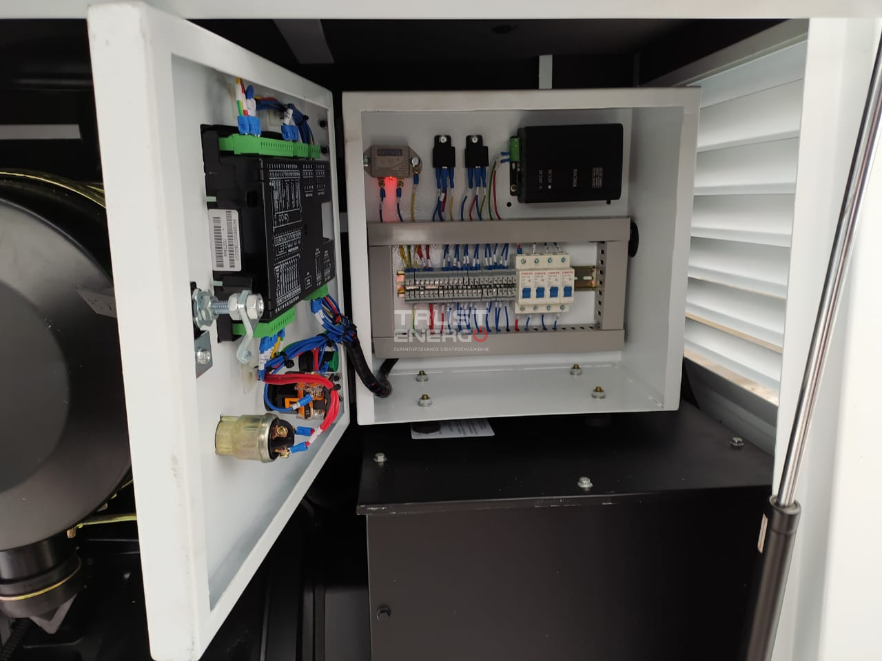 - Система переключения нагрузки (АВР) с сети на генератор и обратно в автоматическом режиме на 200А;
